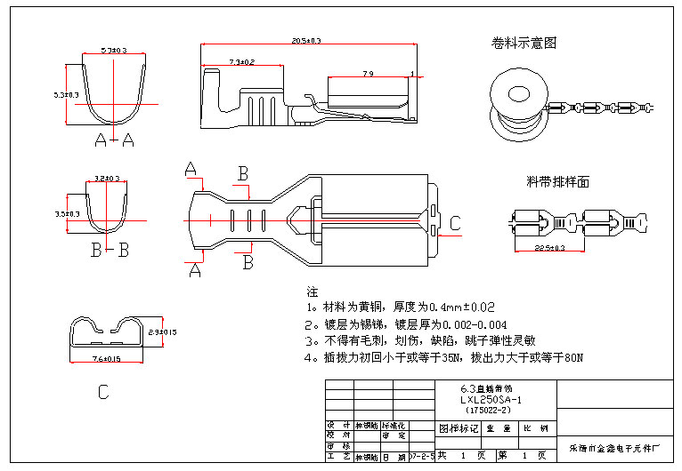 • 产品名称:6.3直插带锁 LXL250SA-1