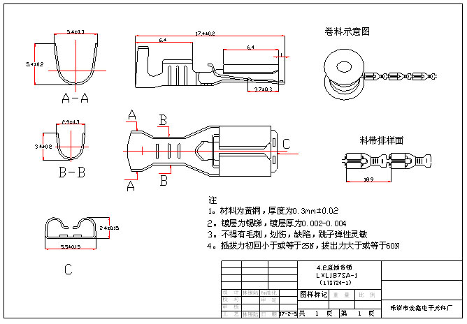 Copyright www.lxl-jinxin.com(复制链接) 乐清冠旭电子有限公司关键词:接插件端子,快速连接器端子,环形接地片端子等,欢迎来电咨询!